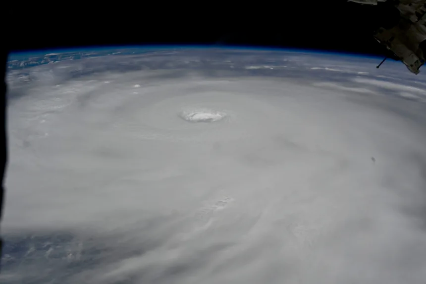 تم التقاط صور من محطة الفضاء الدولية لرائد الفضاء الياباني كيميا يوي تُظهر حجم النظام الهائل وهو يمر فوق بحر الصين الجنوبي.