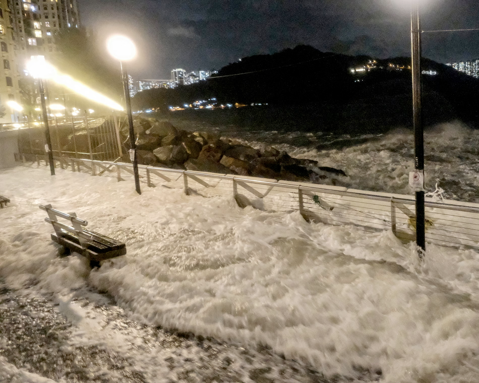 وتعرضت هونغ كونغ لأمواج قوية وأمطار غزيرة أغرقت بعض الطرق والعقارات، بينما أُجبرت شركات الطيران على إخلاء الطائرات أو تثبيتها في مطارات خارجية، وأُغلقت الكازينوهات في ماكاو كإجراء احترازي.