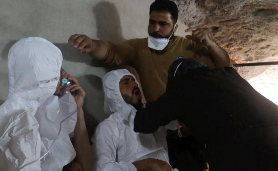 وفي السابع من أبريل، استهدف هجوم بالكلورين مبنى قريبا من مستشفى ميداني نقل إليه المصابون وكان الطبيبان والمسعف في عداد طاقمه.