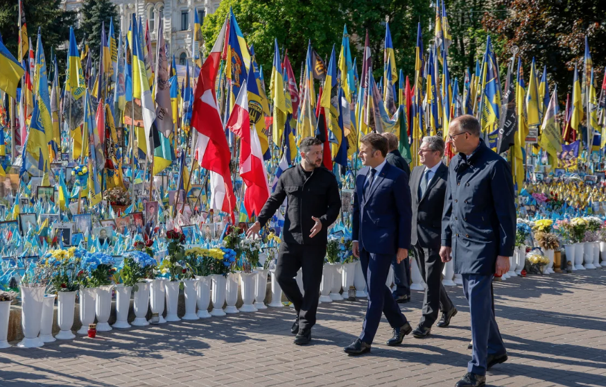 وصل فريدريش ميرز، المستشار الألماني الجديد ، والرئيس الفرنسي إيمانويل ماكرون، ورئيس الوزراء البريطاني كير ستارمر، ونظيره البولندي دونالد توسك، صباح السبت إلى محطة القطارات الرئيسية في كييف. وبعد ذلك بوقت قصير، التقوا بالرئيس الأوكراني فولوديمير زيلينسكي.