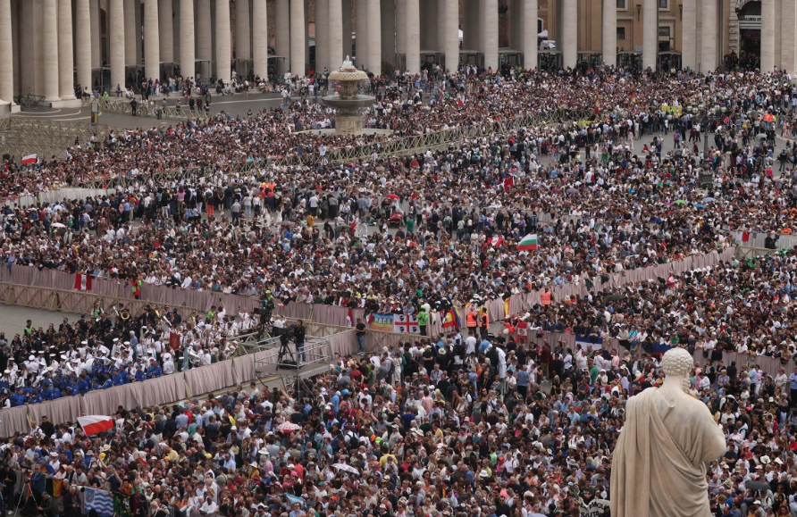 مع انتهاء خطابه، دوّت هتافات “يحيا البابا” بين عشرات الآلاف من الناس. وزيّنت الحشود أعلام من جميع أنحاء العالم، بما في ذلك الولايات المتحدة والمكسيك والبرازيل وإسبانيا.