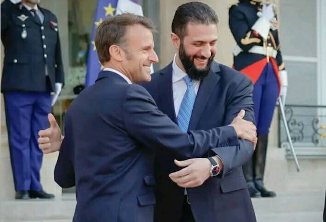 ✅ صافح الرئيس السوري أحمد الشرع – الذي كان في يوم من الأيام تابعا لفرع من تنظيم القاعدة – الرئيس الفرنسي إيمانويل ماكرون