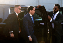 بريجيت ماكرون لم تكن أقل أناقة، إذ ارتدت فستانًا أبيض متوسط الطول مزينًا بتفاصيل ذهبية، في أسلوب بسيط وأنيق يعكس الطابع الفرنسي الراقي.